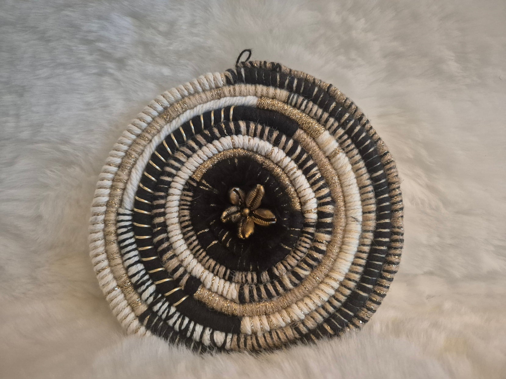 Fabriquée à partir de fils de différentes couleurs.